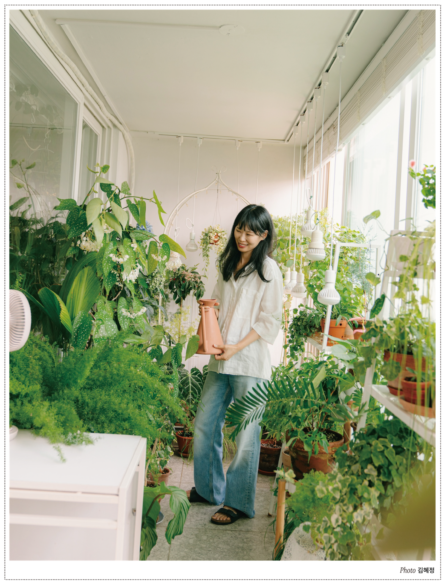 생각보다 운명적이거나 낭만적으로 하진 않아요. 오히려 현실적이고 담담하게 대하는 것 같아요. 물 주는 것도 알록달록 물뿌리개로 ʻ예쁘게 살살~’ 이런 느낌보다는 기술적으로 빠르게 처리하죠. 주어진 업무처럼 생각하면서 원하는 만큼, 필요한 만큼 해결해요. 그렇기 때문에 식물이 잘 자라거나 또는 시들거릴 때 평정심을 유지하기 위해 애쓰고요. 너무 좋아하거나 너무 울적해질 필요도 없어요.
