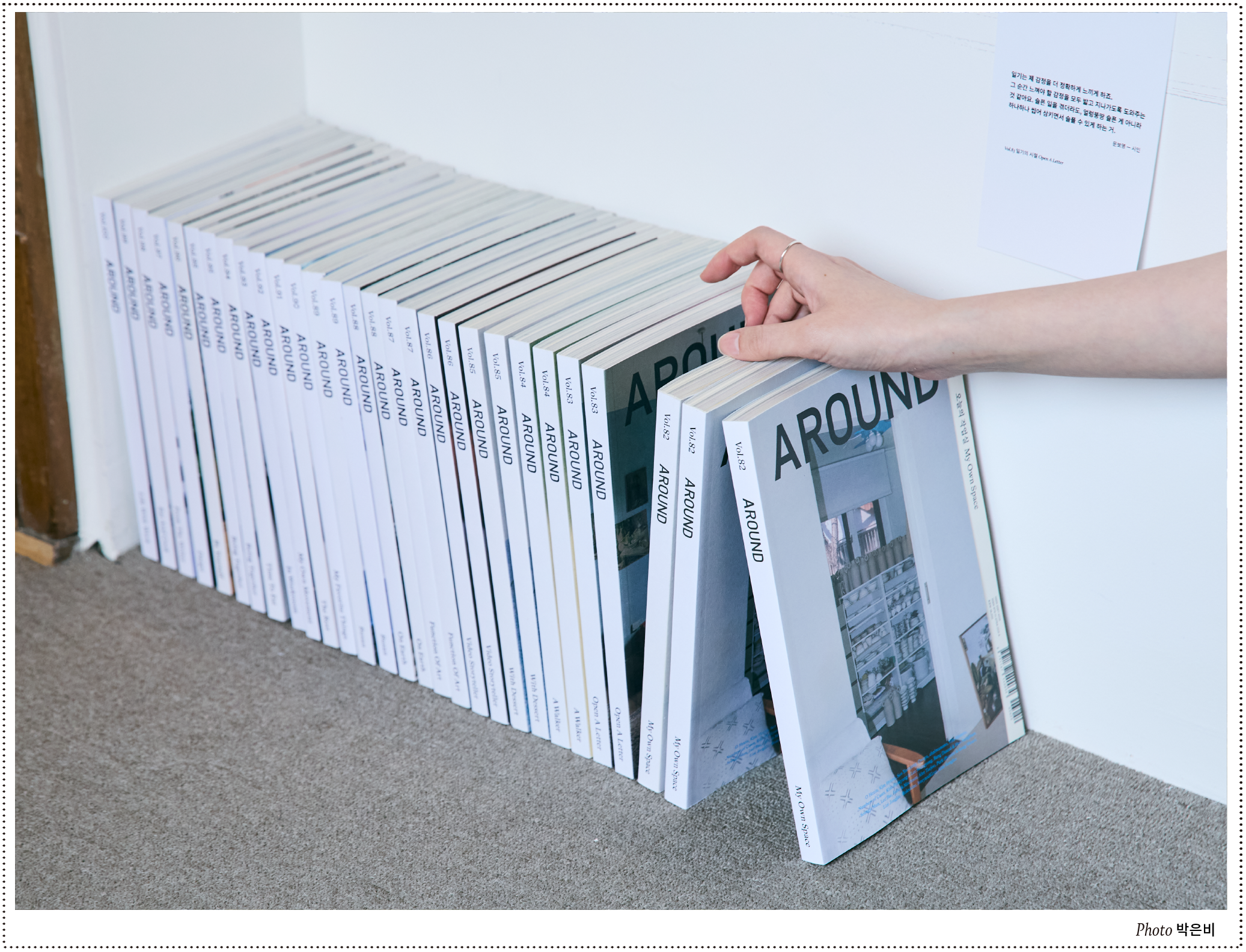 따뜻한 5월, 서촌의 갤러리 ‘무서록’에서 100호 기념 전시를 열었습니다. 올해 초부터 많은 분들이 《AROUND》 100호에 대한 관심과 응원을 보내주셨어요. 어떤 모습으로 100호를 기념해야 할지, 여러 고민의 시간이 있었지만 가장 어라운드다운 모습을 보여주고 싶었습니다. ‘묻고 답하기’를 중심으로 다양한 볼거리를 꾸리고 우리의 지난 걸음을 톺아봤습니다. |