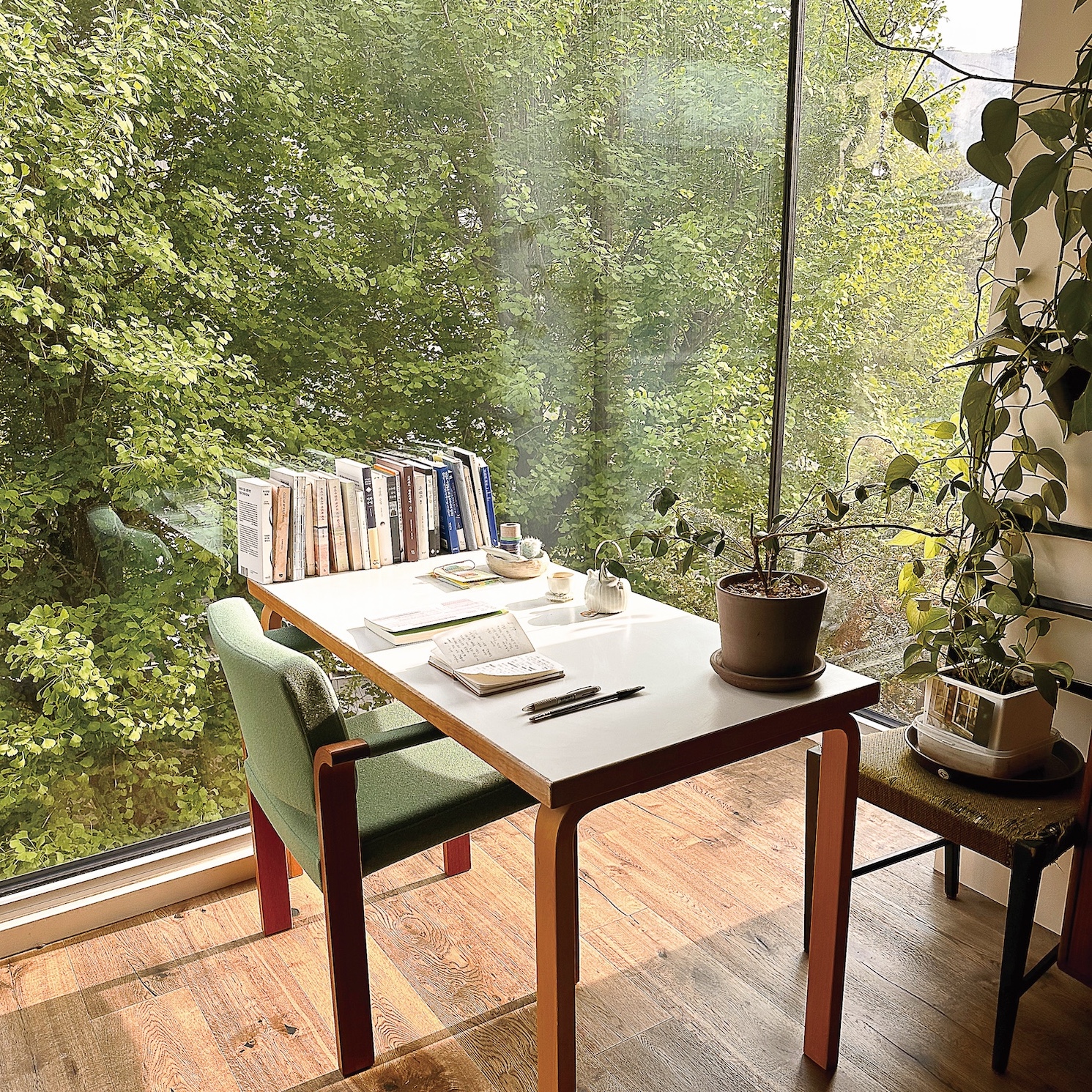 예진 맞아요. 창밖에 있는 나무가 은행나무거든요. 가을이 되면 미리 스케줄을 짜요. 그 시기가 워낙 짧잖아요. 빛이 일렁이고 노란 잎 덕분에 공간 전체가 환해지는 순간이요. 혼자 보기엔 아깝다는 생각이 들 때가 있어요. 그래서 사람들을 초대하게 돼요. 좋은 걸 혼자만 간직하기보다 같이 나누고 싶다는 마음이 점점 커지더라고요. 다만 그게 단순한 자랑처럼 보이지는 않았으면 해서, 풍경만 보여주기보다는 분명한 이유를 만들어 초대하려고 해요. 예를 들면 식사를 대접하거나, 책을 함께 읽는 모임처럼 목적이 있는 만남으로요.