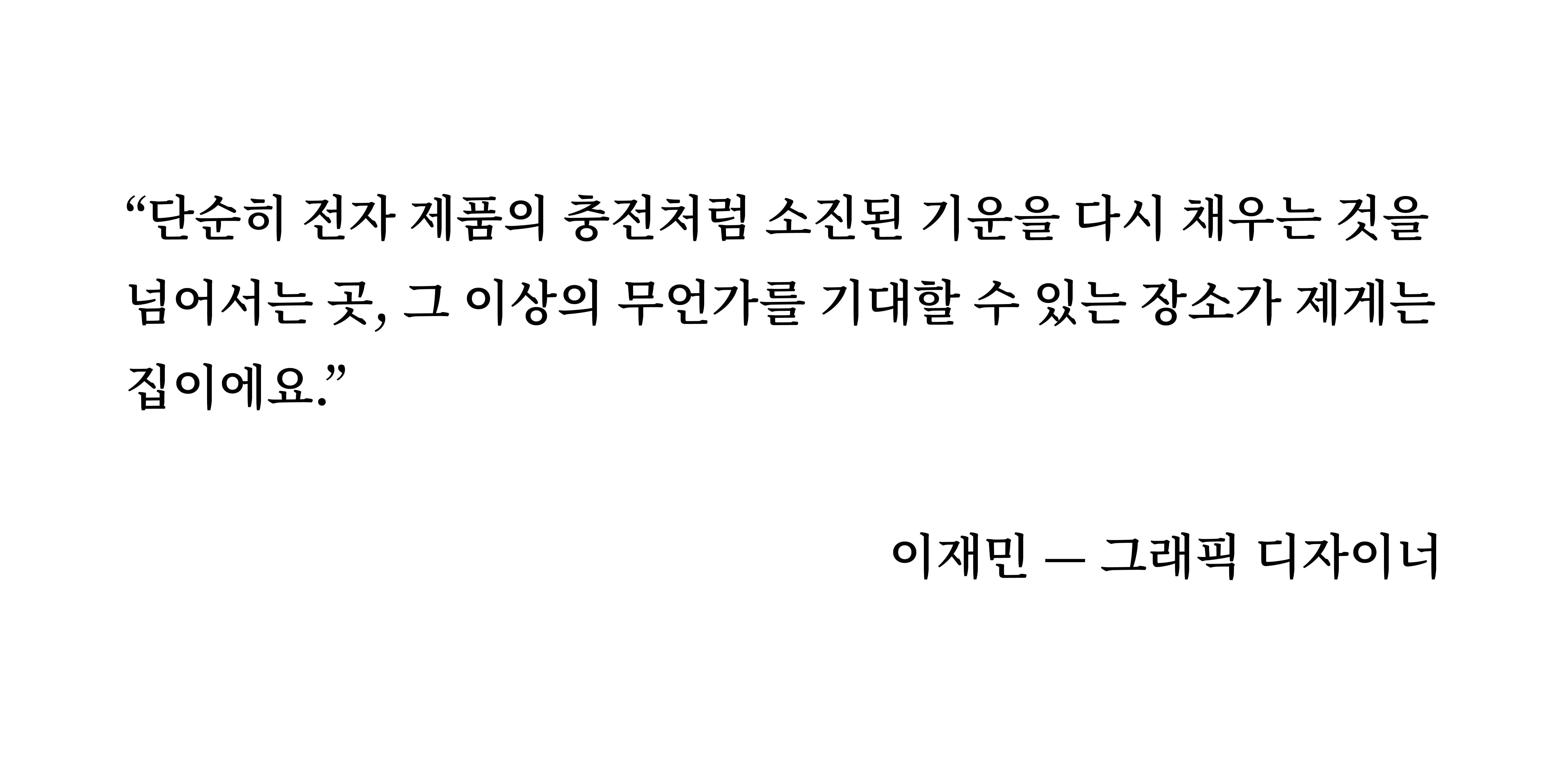 진호 회사에 다닐 때는 하루 종일 실내에 있다 보니 밖에 비가 오거나, 날씨가 많이 덥거나 추워도 크게 와닿지 않았어요. 퇴근할 때 돼서야 “아, 오늘 비가 왔구나.” 하고 알게 되는 정도였죠. 변화가 눈에 보이지 않으니 시간의 흐름도 잘 느끼지 못한 채 지나가더라고요. 지금은 창밖 풍경이 계속 달라지니까, 계절이 지나가고 시간이 쌓이고 있다는 걸 자연스럽게 인식하게 돼요.