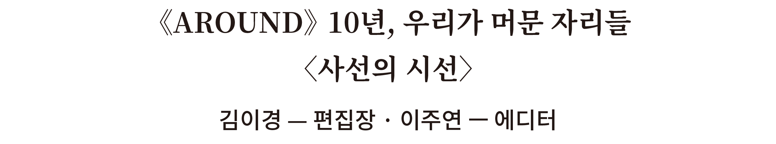 이경 그렇지. 주연의 일상에서 이번 호를 바라본 거지. ‘AROUND’는 주변이란 의미지만 그 기준은 나야. 모든 이야기의 중심엔 내가 있어.